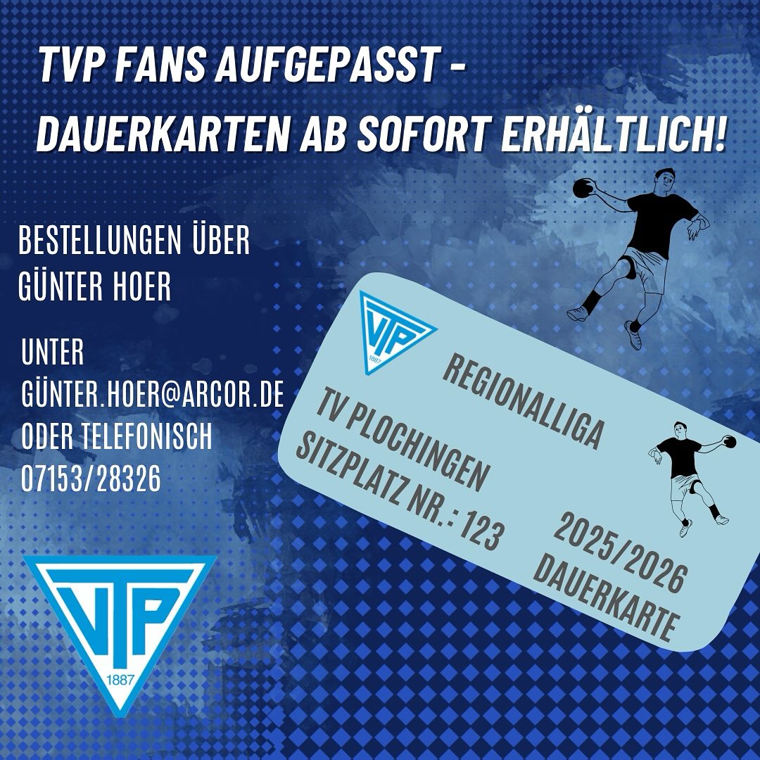 TVP Fans aufgepasst. Ab sofort sind die Dauerkarten unserer Regionalliga-Mannschaft für die Saison 25/26 erhältlich . Die Karten sind auch für die Männer 2 (Bezirksoberliga) gültig. Bei Interesse bitte melden bei Günter Hoer: guenter.hoer@arcor.de oder 07153 28326 Preise: Erwachsene € 150 Rentner € 130 Studenten € 100 #tvplochingenhandball #plochingerjungs #regionalliga